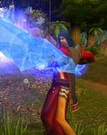 Autre conséquence de la faible défense, le choix de l'arme. En effet, ne pouvant pas franchement se battre aux corps à corps, l'arme du mage devra elle aussi viser des effets corrects, et aussi (et pour certains surtout) donner un look correct a votre mage. Le mage dispose naturellement de la capacité à se battre avec un Bâton (arme à 2 mains), d'utiliser un Objet à Garder en main (non combatif) et d'utiliser une Baguette (attaque à distance). Il peut aussi apprendre (moyennant des points de compétences) à manier une Dague (arme à une main) ou une Épée (seulement à une main).