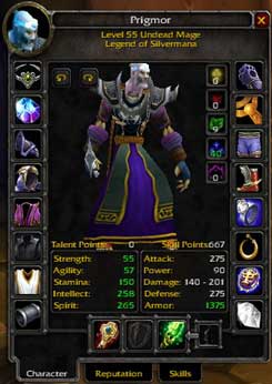 En vrac, il pourra bloquer des ennemis par Frost Nova, occasionner des dégâts corrects et rapides pour peu de mana avec Scorch, et du coté défensif Arcane Intellect augmentera considérablement l'intelligence du mage et de ses alliés ou encore Conjurer de la nourriture et de la boisson. Tout ceci implique néanmoins une bonne gestion de son énergie magique (sous peine de perdre rapidement son énergie physique une fois l'adversaire hors de danger...)