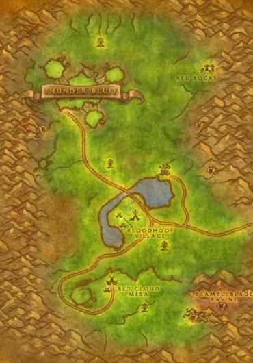 Mulgore est ceinte par des montagnes qui ne sont franchissables qu'en un endroit, en direction des Barrens.