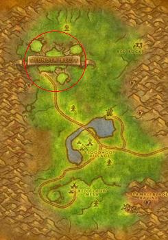 Thunder Bluff, capitale de Mulgore, est située au nord de cette région, dans un cirque rocheux infranchissable. Pour y parvenir il faut traverser les grandes plaines de Mulgore, au nord de Bloodhoof Village.
