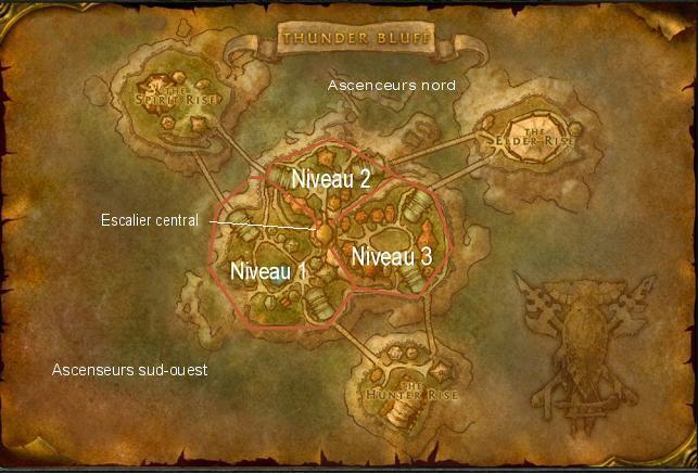 Si vous avez suivi le chemin qui provient de Bloodhoof Village, c'est par le niveau 1 auquel vous accèderez à Thunder Bluff.