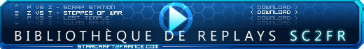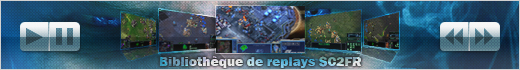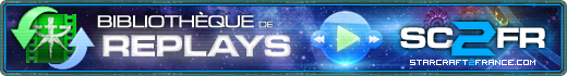 Lancée en septembre 2010, la bibliothèque de replays SC2FR permet à tous nos membres de poster facilement leurs replays et à tout le monde de les télécharger. Les replays postés apparaissent sur le site SC2FR ainsi que sur le forum dans notre section des replays où les membres peuvent commenter les parties.