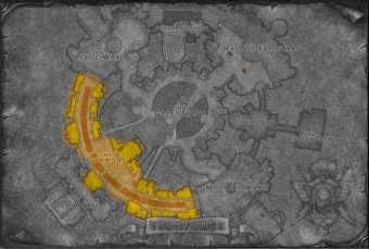 Au nord on accède le quartier des mystiques, à l'est le quartier des militaires et deux petits tunnels situés de part et d'autre de la banque mènent à la grande forge.