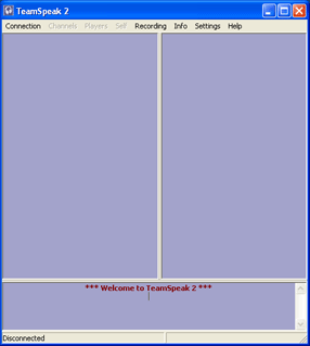 1- Si ce n'est pas déjà fait, lancez TeamSpeak, vous devriez avoir une fenêtre similaire à celle-ci.