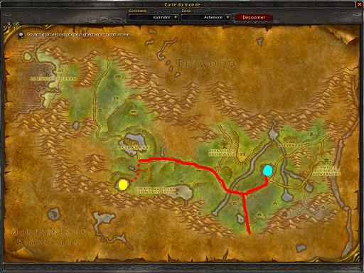 Vous devrez vous rendre dans Ashenvale (région au nord des Barrens), y faire un long périple jusqu'aux ruines de Stardust au sud d'Astranar (voir la carte annotée). Penser à prendre le chemin aérien du Poste de Splintertree.